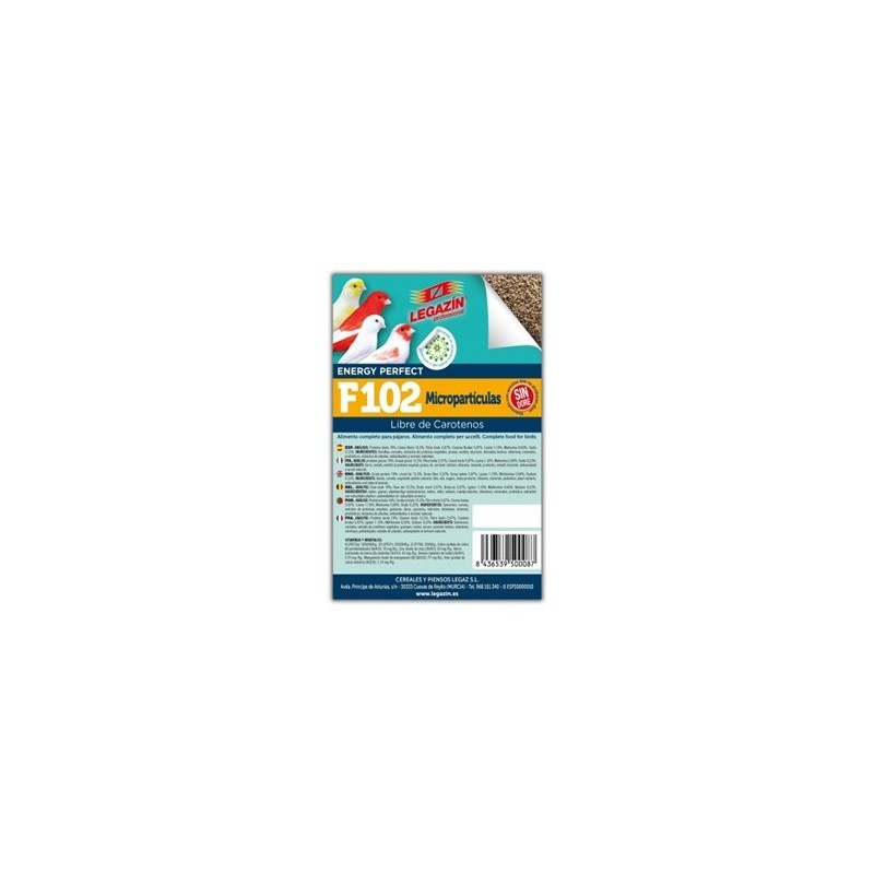 Pienso F102 MICROPARTÍCULAS SIN DORÉ Elaborado con semillas que no producen doré. Alimento completo para pájaros. Libre de Carotenos.