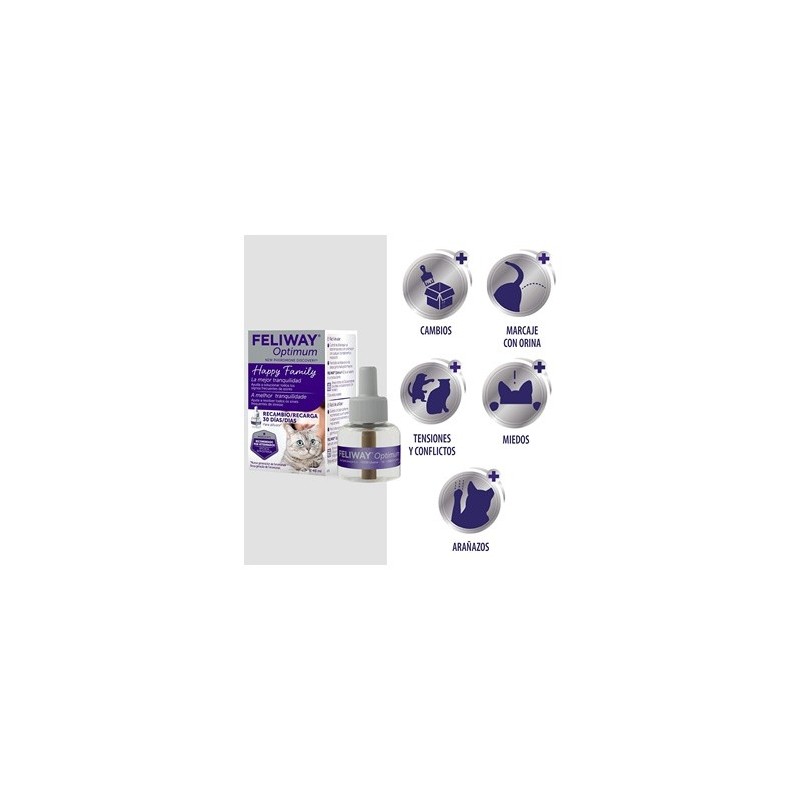 FELIWAY Optimum transmite un mensaje de tranquilidad para tus gatos ya que contiene el Complejo de Feromonas Felinas más avanzado.