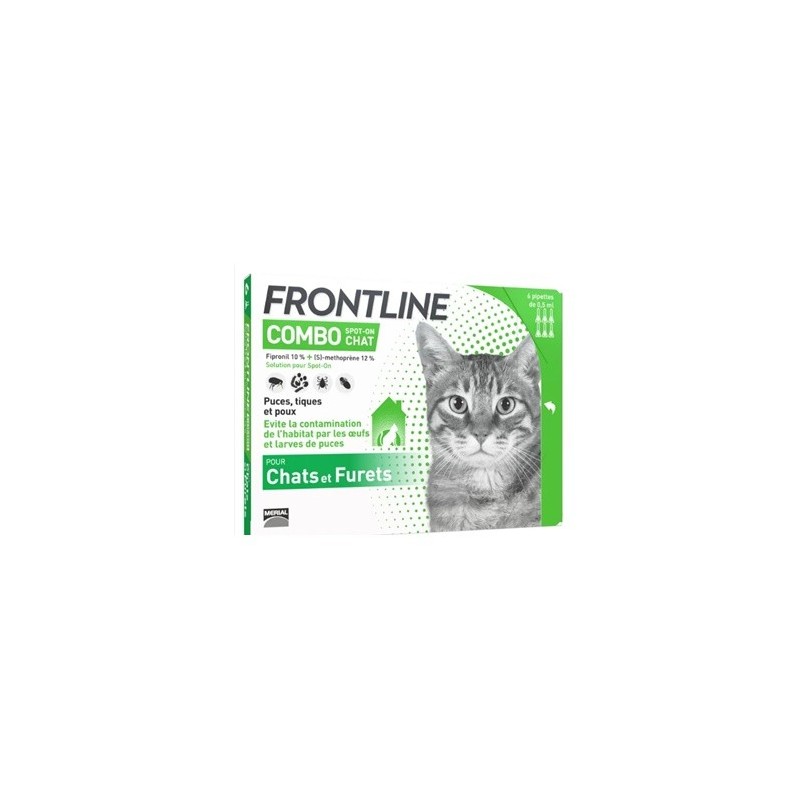 Frontline Combo es un antiparasitario externo para gatos y hurones en pipetas. Antiparasitario externo en pipeta que ofrece a tu mascota una excelente protección frente a pulgas, sus huevos y larvas, piojos y garrapatas.