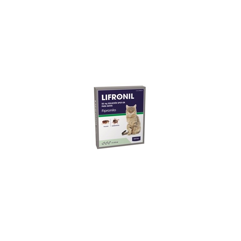 Lifronil Spot On es un antiparasitario externo para gatos. El medicamento veterinario presenta una eficacia insecticida persistente durante 5 semanas frente a pulgas y garrapatas.