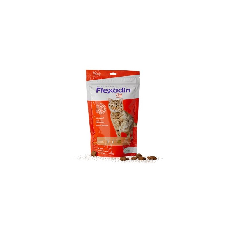 FLEXADIN GATO. Ayuda a las articulaciones. Alimento complementario para gatos. Comprimidos masticables altamente apetitosos para una fácil administración en una única toma diaria.
