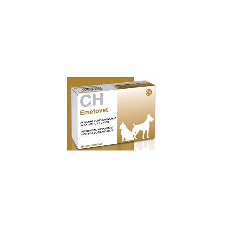 EMETOVET 30 comprimidos para perros y gatos como apoyo nutricional para el control de las náuseas y vómitos, con propiedades antieméticas en distintas situaciones: