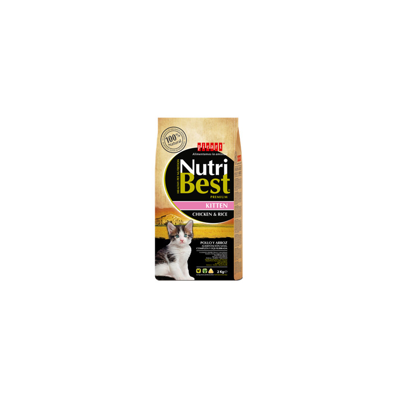 NutriBest Cat Chicken & Rice es un alimento Premium formulado por nuestros expertos en nutrición y veterinarios para que tu gato disfrute de una salud óptima. Contiene Algas Marinas del Atlántico Norte para una piel y un pelo sanos y cuidados.