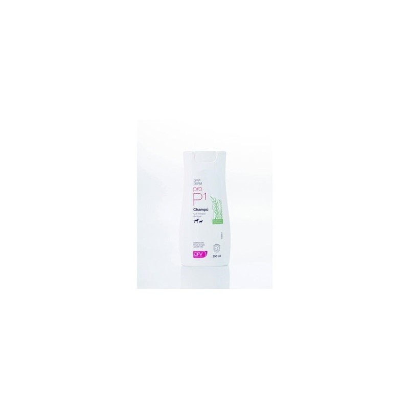 MODO DE EMPLEO: Uso externo. Después de mojar al animal con agua templada, aplicar DFV® DERM PrO P1 CHAMPÚ sobre el pelo. Frotar hasta formar una ligera capa de espuma. Dejar actuar el producto de 5 a 10 minutos antes de aclarar abundantemente con agua. Repetir si es necesario. Frecuencia de uso: Se recomienda aplicar 2 a 3 veces por semana, durante 3 4 semanas. Después la frecuencia de uso se puede reducir a una vez por semana, hasta que la piel haya recuperado su aspecto normal. En caso de duda, se recomienda consultar con su veterinario.