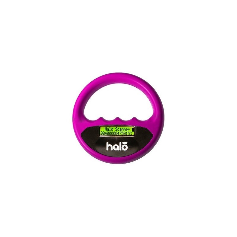 El escáner de microchip Halo es capaz de mostrar los microchips FDX-B (15 dígitos), FDX-A (FECAVA) de 10 dígitos utilizados para la identificación de animales de acuerdo con las normas ISO 11784. El Halo está habilitado para Scanner Angel® y viene con un cable USB para cargar la batería interna recargable del escáner.