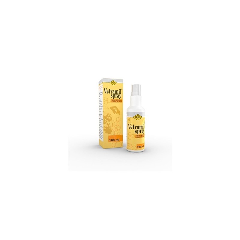 Vetramil pomada dérmica a base de mielm favorece la cicatrización de la piel y combate las infecciones de las heridas.