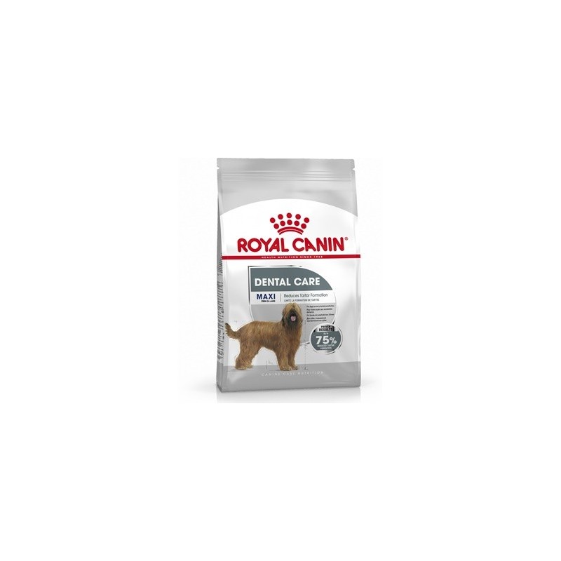 Dental Care Maxi de ROYAL CANIN es un alimento apto para perros de entre 26 y 44 kg que les ofrece una nutrición deliciosa y completa que favorece su salud dental.