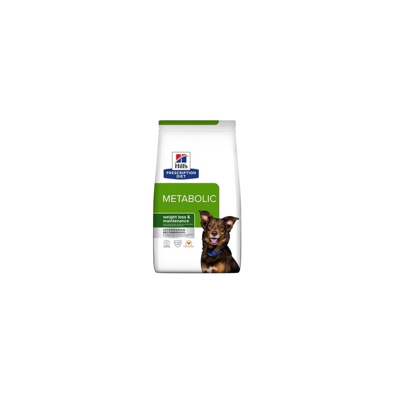 Prescription Diet Metabolic Canine con Pollo (17%) es un alimento dietético completo para la reducción del exceso de peso y para el mantenimiento de un peso saludable en perros adultos