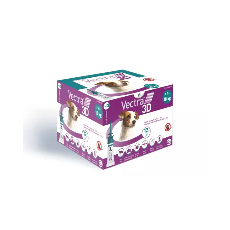 VECTRA 3D es un producto que actúa por contacto y gracias a su efecto repelente protege frente a los principales parásitos que afectan a las mascotas. Vectra 3D es eficaz frente a pulgas, garrapatas, flebotomos, mosquitos y mosca del establo.