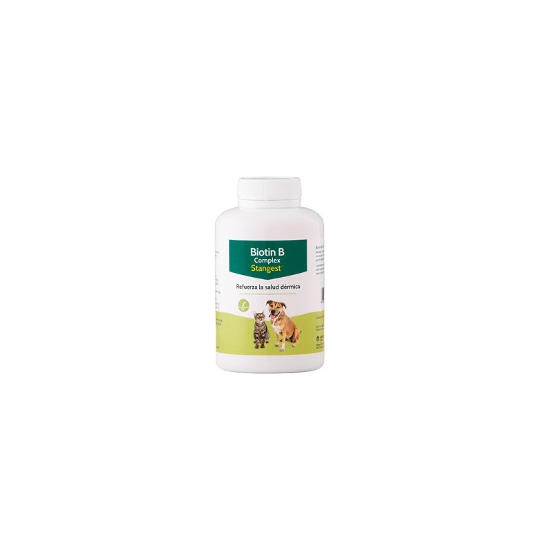 Incorpora una alta concentración de Biotina y una proporción equilibrada de vitaminas del grupo B. La biotina, debido a su intervención tanto en el metabolismo de carbohidratos como de lípidos, activa el metabolismo de la piel, pelo y uñas, en perros con síntomas carenciales dérmicos, como caída de pelo, picor y pruritos, dermatosis, pelo áspero y sin brillo. Las vitaminas del grupo B favorecen la normalización de la piel en afecciones cutáneas severas.