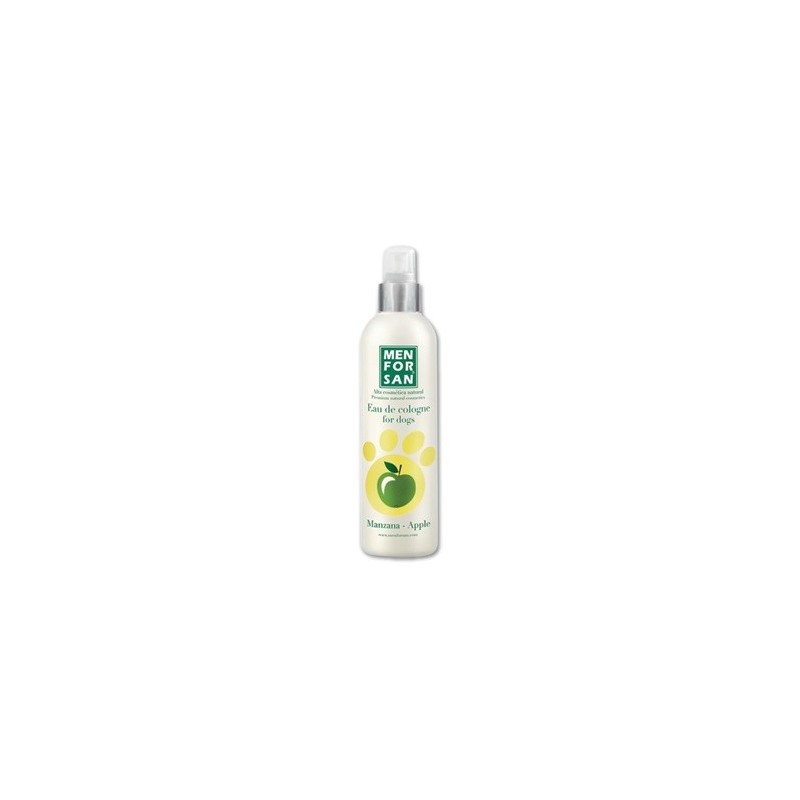 Aguas de colonia aroma manzana para perros con fragancias frutales naturales especialmente creadas para proporcionar después del baño un olor fresco y un intenso efecto desodorante muy agradable respetando la piel y las propiedades olfativas del animal. No contienen alcohol y tienen ph neutro, careciendo de efectos irritantes y evitando que el perro estornude después de su aplicación.