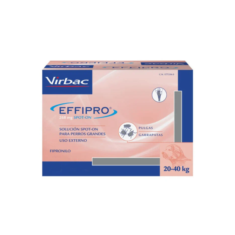 - 1 pipeta de 2,68 ml para perros con pesos entre 20-40 kg.