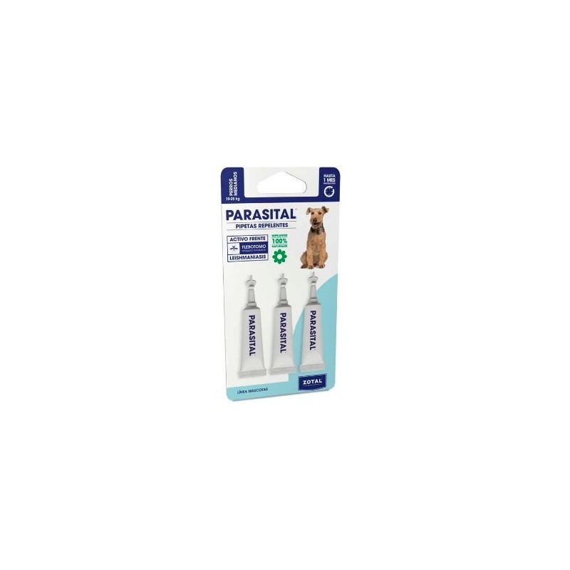 PARASITAL Pipetas perros medianos 10-25 kg, gracias a su composición a base de ingredientes activos naturales, actúa con eficacia contra los eternos enemigos de nuestras mascotas: los parásitos externos. Garrapatas, pulgas, moscas e incluso el mosquito transmisor de la Leishmaniasis, dejarán de ser un problema, proporcionando bienestar y tranquilidad tanto a dueños como a mascotas