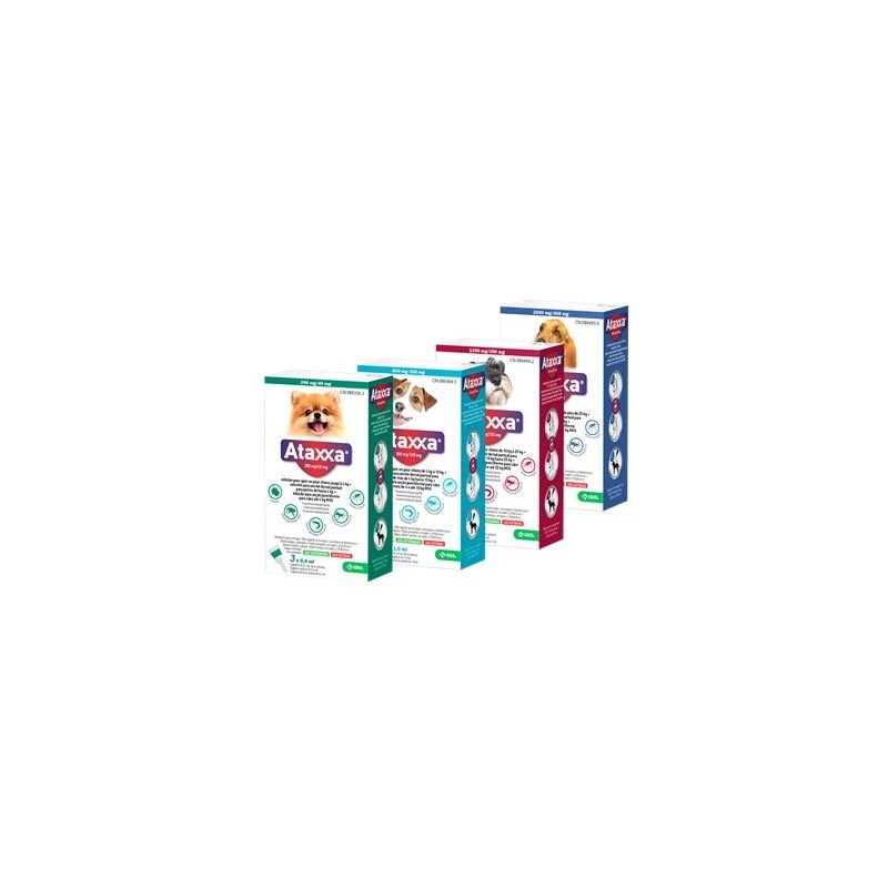 Ataxxa es un tratamiento en pipetas para perros que previene y trata infestaciones por pulgas y garrapatas, así como también ofrece un efecto repelente contra mosquitos y flebotomos.