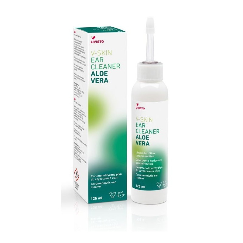 V-skin ear cleaner aloe vera es para la limpieza regular del oído o como complemento en el tratamiento de la otitis.