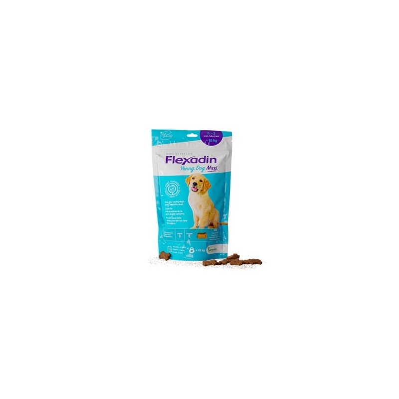 FLEXADIN CACHORRO MAXI. Ayuda a las articulaciones. Alimento complementario para perros. Comprimidos masticables altamente apetitosos para una fácil administración en una única toma diaria.