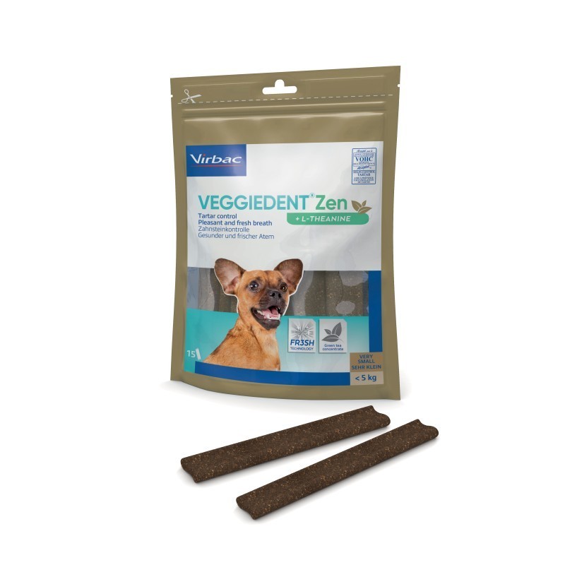 Veggiedent Zen es un snack premium y multifuncional científicamente probado, que incorpora beneficios saludables al cuidado dental diario para el bienestar de los perros más inquietos.