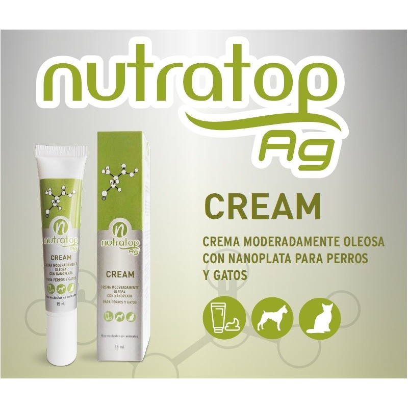 Es una crema con las mismas cualidades que NUTRATOP AG GEL pero para aplicar en superficies abiertas que no puede cubrirse con un vendaje o en lesiones superficiales de menor escala.
