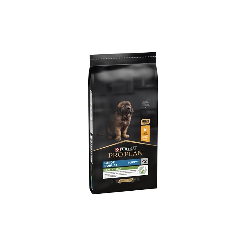 PURINA PRO PLAN Puppy Large Robust Healthy Start rico en Pollo es un alimento completo para cachorros de razas grandes de constitución física robusta, rico en pollo. También es adecuado para perras gestantes / lactantes. Contiene calostro, que se ha demostrado que apoya a la respuesta inmunitaria.