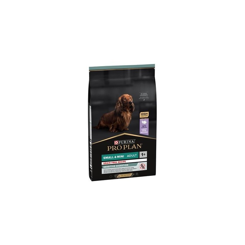 PURINA PRO PLAN Small Adult Sensitive Digestion rico en Pavo es un alimento completo para perros adultos de razas pequeñas con una digestión sensible. Fácilmente digestible y demostrado que mejora del equilibrio de la microflora intestinal.