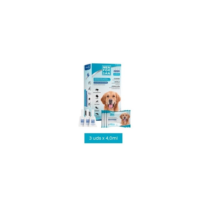 MENFORSAN® Contiene Permetrina (500mg) y Imidacloprid (100mg), elimina y protege durante 4 semanas pulgas, garrapatas, y mosquitos flebótomos