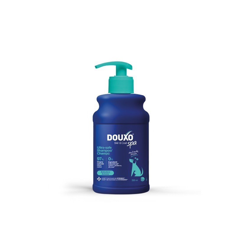 Enriquecido con un complejo de activos con propiedades anti-olores de larga duración, el champú Douxo Spa actúa de manera global sobre los olores desagradables. Este cuidado ultra-seguro está formulado con un 97 % de ingredientes de origen natural y no contiene ningún componente controvertido. Es perfecto para perros con piel sensible gracias al extracto de Ophiopogon japonicus, que fortalece la barrera cutánea y mejora la cohesión celular.