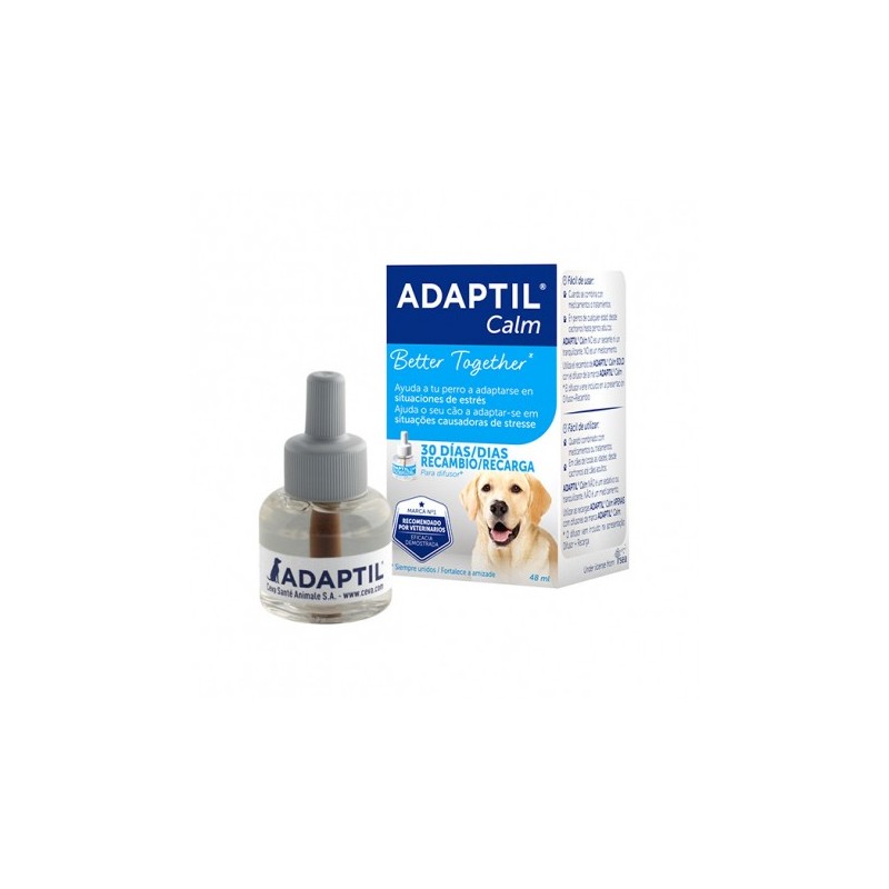 Usa ADAPTIL Calm Recambio cada mes para continuar ayudando a tu perro a estar calmado y relajado en casa, en situaciones como quedarse solo en casa, ruidos fuertes, visitas y miedos.