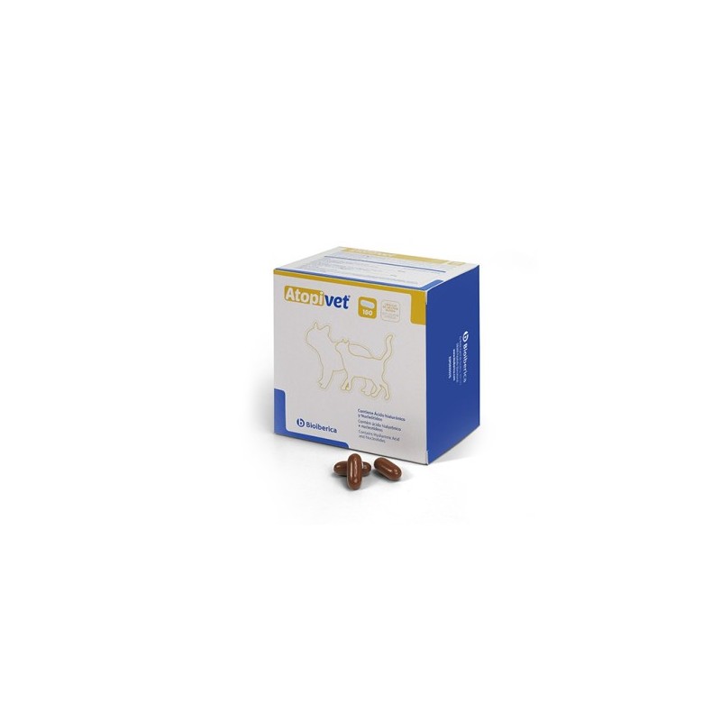 Atopivet es un suplemento natural a base de Omega 3 Nucleotidos ,Omega 6, Ácido Hialurónico, Óxido de zinc y vitamina e) que contribuyen a mejorar el estado de la piel.