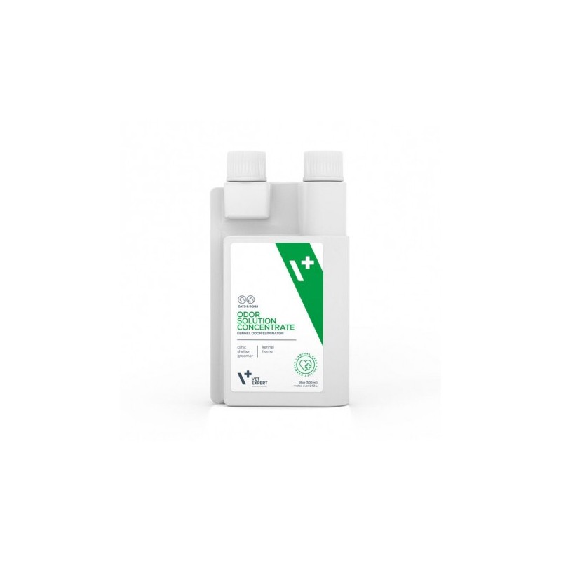 Concentrado para la preparación de una solución que elimina eficazmente incluso los olores más ruidosos y persistentes de los animales y sirve como eficaz aditivo a los productos de limpieza, apto para su uso en grandes superficies: suelos, paredes, jaulas, corrales y perreras. Muy eficaz y soluble en agua.