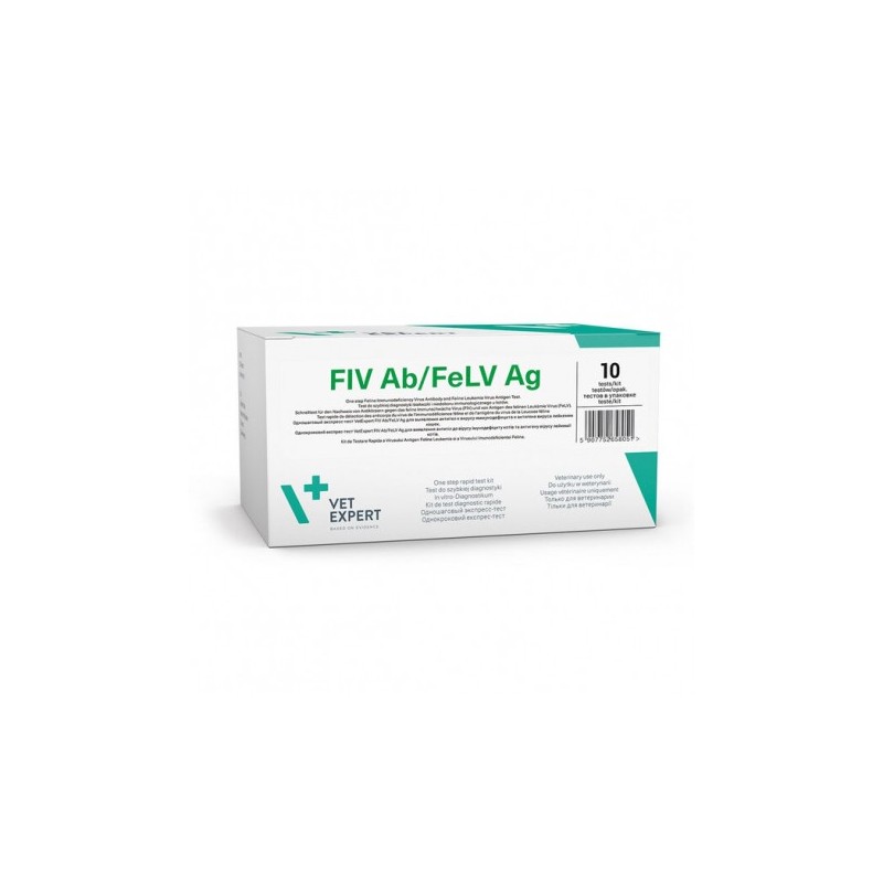 Detecta los anticuerpos contra el virus de la inmunodeficiencia felina (FIV) y el antígeno del virus de la leucemia felina (FELV). Sensibilidad: FIV 96,0%, FeLV 99,9% / Especificación: FIV 98,0%, FeLV 99,9%