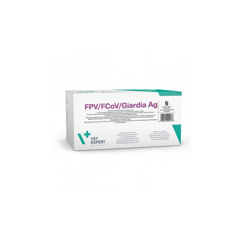 Detecta los antígenos del virus de la panleucopenia, coronavirus y Giardia en gatos. Sensibilidad: FPV 97,0%, FCoV 92,8%, Giardia 99,9% / Especificación: FPV 97,0%, FCoV 98,1%, Giardia 99,9%