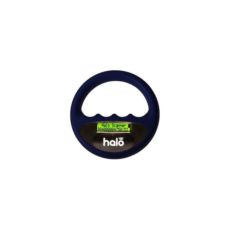 El escáner de microchip Halo es capaz de mostrar los microchips FDX-B (15 dígitos), FDX-A (FECAVA) de 10 dígitos utilizados para la identificación de animales de acuerdo con las normas ISO 11784. El Halo está habilitado para Scanner Angel® y viene con un cable USB para cargar la batería interna recargable del escáner.