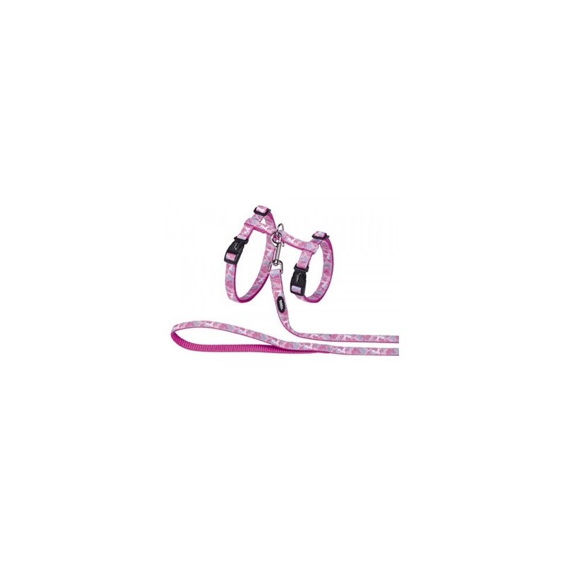 Set Gato XL Arnés y Correa Camuflaje Rosa