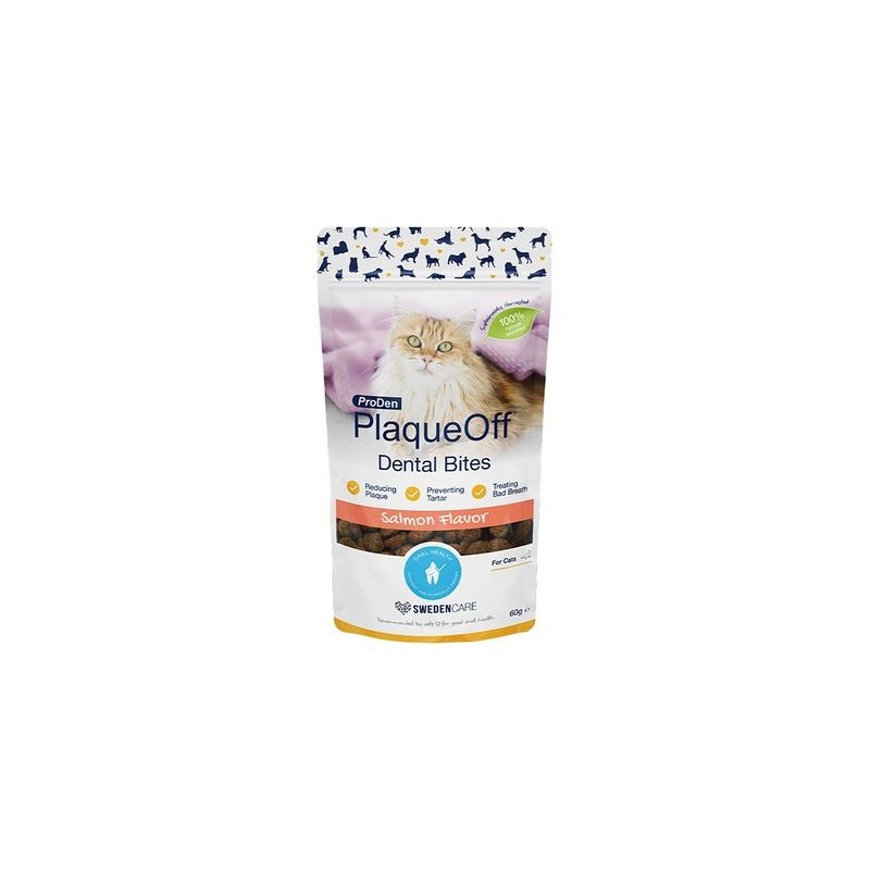 Dental Bites es perfecto para tus felinos. Nuestros productos contienen el ingrediente de algas marinas activas 100% naturales A.N ProDen®, de eficacia probada para reducir la placa, el sarro y mejorar el mal aliento. Sin azúcar añadido, conservantes artificiales ni colorantes, son una recompensa sana y sabrosa para tu gato. ¡Nuestros Dental Bites tienen un sabroso sabor a salmón especialmente desarrollado para felinos para que tu gato no va a poder resistir!