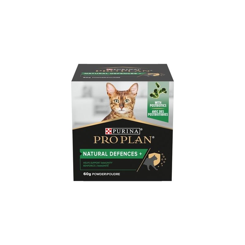 PRO PLAN Natural Defences + protege a tu gato desde el interior gracias a su contenido en postbióticos y está científicamente diseñado para: - APOYAR LA SALUD INMUNITARIA - AYUDAR A LA PRODUCCIÓN NATURAL DE ANTICUERPOS