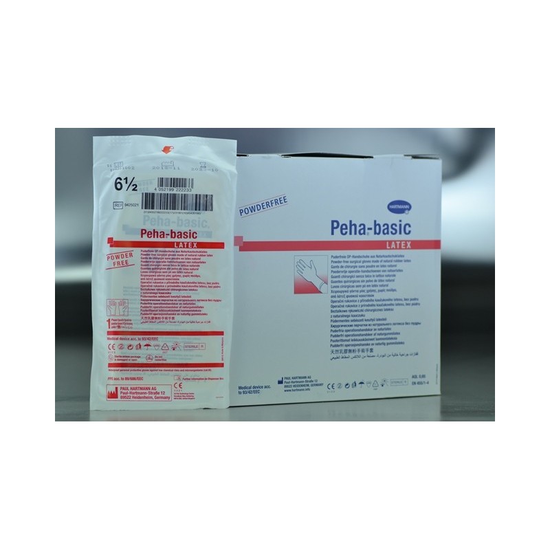 Peha ® látex -Basic es un guante de látex quirúrgico desechable sin polvo.