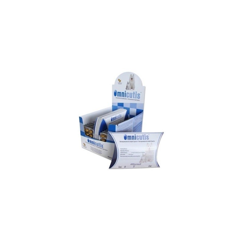 Perros y Gatos: Tratamiento dietético completo de la piel para todos los casos en los que se pretenda un efecto antiinflamatorio continuado y una mejoría prolongada de la calidad de vida sin los efectos secundarios de los corticoesteroides. Indicado en: Dermatosis y alopecias que respondan a los ácidos grasos esenciales; dermatosis por carencia de vitamina A; dermatosis y seborreas secas por carencia de zinc.