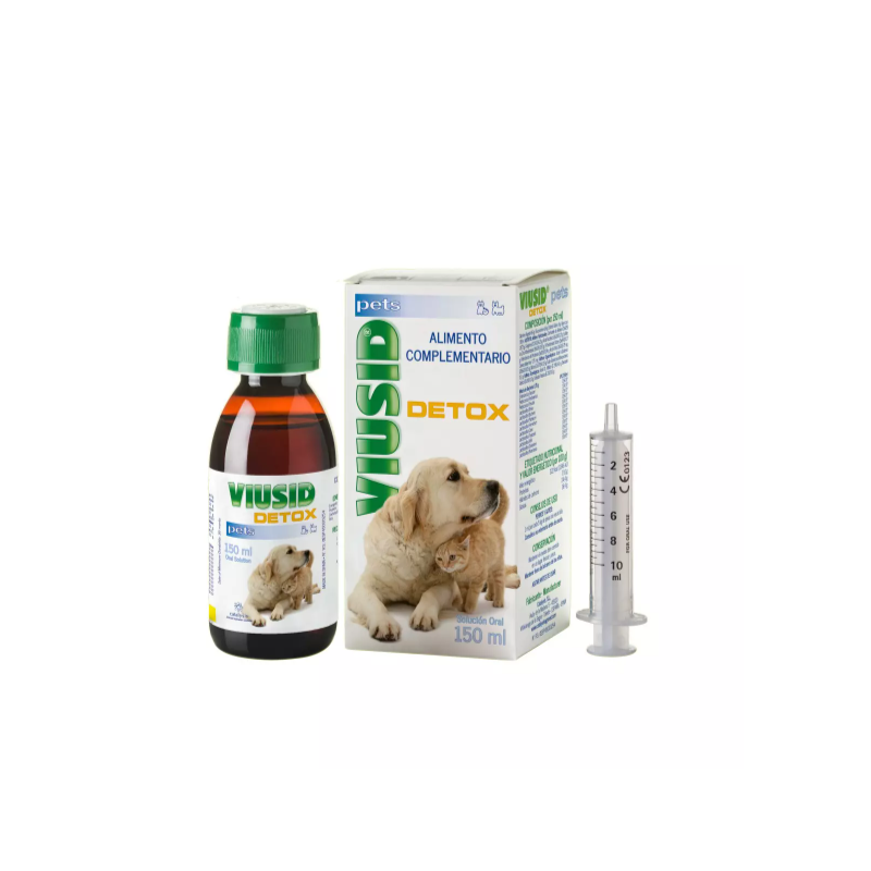 Viusid Detox de Pets es un probiótico en forma de solución oral que actúa como inmunomodulador y activa de forma natural el proceso de eliminación de sustancias tóxicas o nocivas del organismo gracias a su efecto antioxidante, apoyando a los órganos encargados de la limpieza del organismo (riñón e hígado).