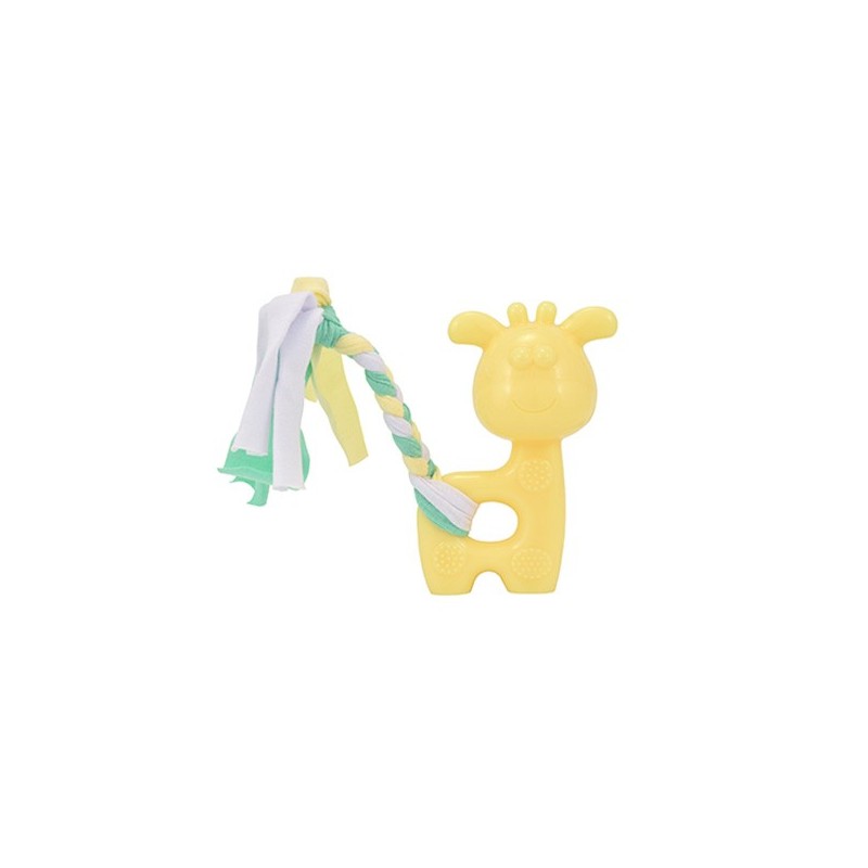Juguete muy resistente en forma de jirafa y cuerda suave. Con sonido. Medida: 9 cm